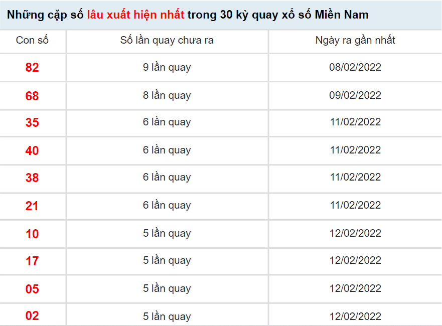 BÍ KÍP giúp KETQUAXS soi cầu XSMN 18/2/2022 và các ngày khác đều cho kết quả dự đoán chính xác nhất, TỈ LỆ trúng giải cao nhất là dựa trên kết quả XSMN ngày hôm trước và phương pháp xác suất thống kê chuyên sâu, các con số lâu ra nhất bạn chọn sẽ cho kết quả trúng thưởng đáng ngạt nhiên. Bạn có thể xem kết quả dự đoán XSMN ngày 18/2/2022 của KETQUAXS hoặc tham khảo kết quả thống kê giải đặt biệt XSMN và 10 cặp số xuất hiện nhiều nhất, xuất hiện ít nhất bên dưới để tự dự đoán kết quả XSMN hôm nay cho riêng mình.
