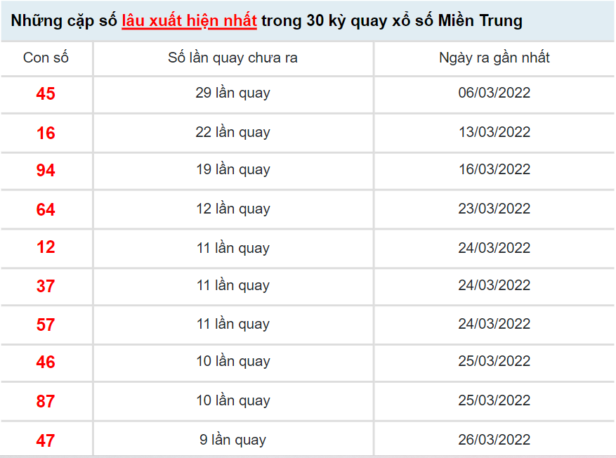 Thống kê SXMT đưa ra cho anh em tổng hợp giải đặc biệt của 30 ngày qua cùng với đó là 10 cặp số về nhiều và loto gan tính đến XSMT hôm nay 5/4/2022, nhằm giúp anh em lựa chọn được những con số đẹp nhất của ngày hôm nay. Cụ thể như sau: